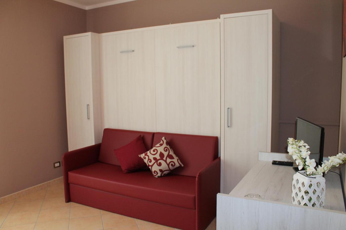 Appartamento Monolocale. The air-conditioned apartment has 1 bedroom and 1 bathroom with a shower and a bidet. The well-equipped kitchenette features a stovetop, a refrigerator, kitchenware and a microwave. Boasting a terrace with garden views, this apartment also offers a coffee machine and a flat-screen TV. The unit has 1 bed.